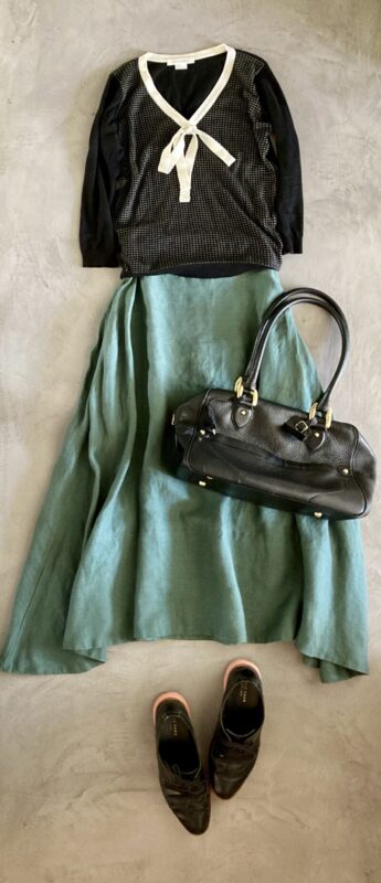 昭和体形のママンでもスタイルよく見えるコーデです。