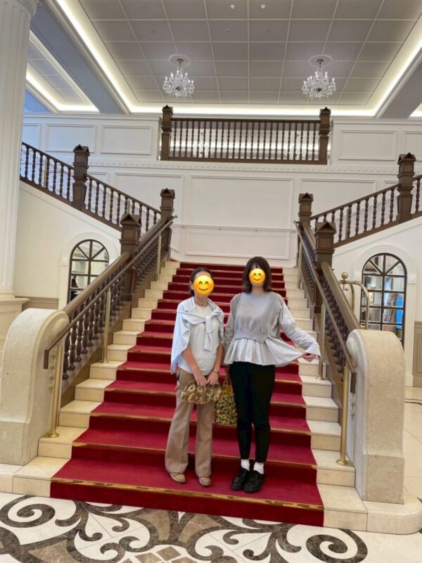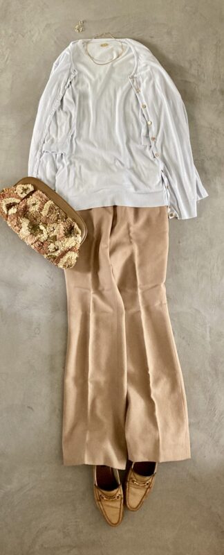 お参りの後は宝塚ホテルでランチなので、アンサンブルニットのキレイ目コーデにしました。