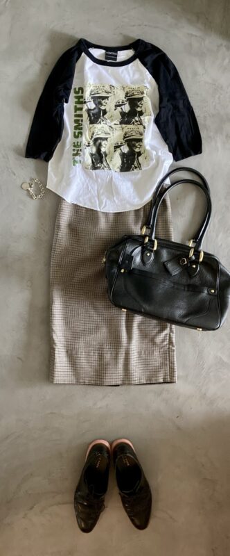ガンクラブチェックとスミスTシャツはちょっとイギリスを意識したコーデです。
