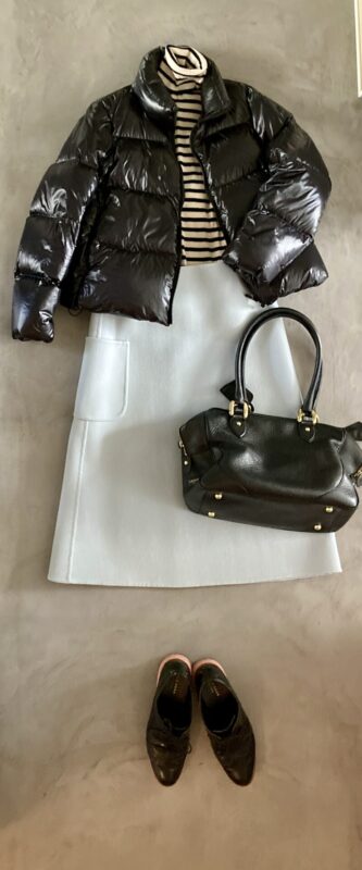 ダウンジャケットでカジュアルに、サンダルで抜け感を出してこの冬も通勤にセットアップをガシガシ使っていこうと思います。