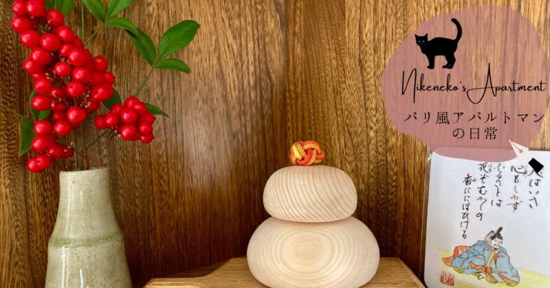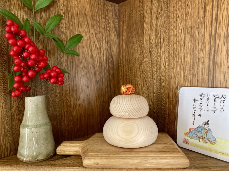 お鏡餅は今年はダイニングのキャビネットに飾りました。