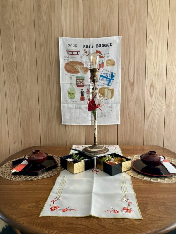 テーブルセンターとプレースマット、お盆のおかげでなんとなくめでたい感じにはなったかな。