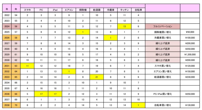 大きな変更点は冷蔵庫買い替えの前倒しと27年から怒涛の繰り上げ返済。